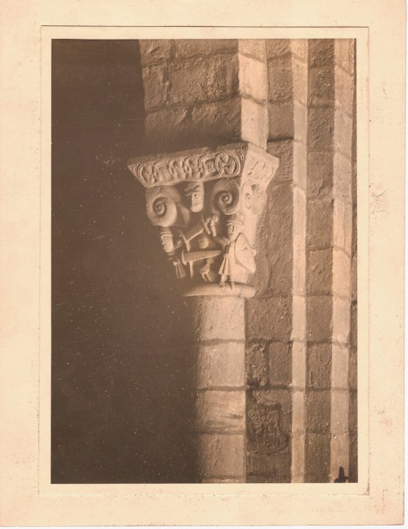 Por fin vemos gente. Un aldeano pasa y nos saluda con la grave urbanidad del montañés que no se ha depravado en el muelle de Santander o en las minas de Riocín. Por la calle de las Lindas bajan dos muchachas, que nos miran y luego hablan entre sí, cementando nuestra vista á Santillana. Al fin, entre tanto caserón viejo, entre tanta puerta corroída, divisamos un establecimiento moderno. Parece que se oye un alto brutal. La impresión es fuerte, porque se había perdido la noción de la perspectiva a la moderna y el ánimo no estaba preparado para transición tan brusca. Mas no hay que asustarse: aquel establecimiento flamante es la botica, y su pórtico hállase pintado de blanco con gallardos ramitos azules que le dan muy buen ver. En la puerta, varios jóvenes de la población entretienen las inacabables horas de Santillana hablando de política o de los toros de Santander ó de las menudas historias de la villa. Y que hay todavóa historias en Santillana, pueblo de tantas grandezas, no podemos dudarlo ya desde que hemos visto que hay gente.